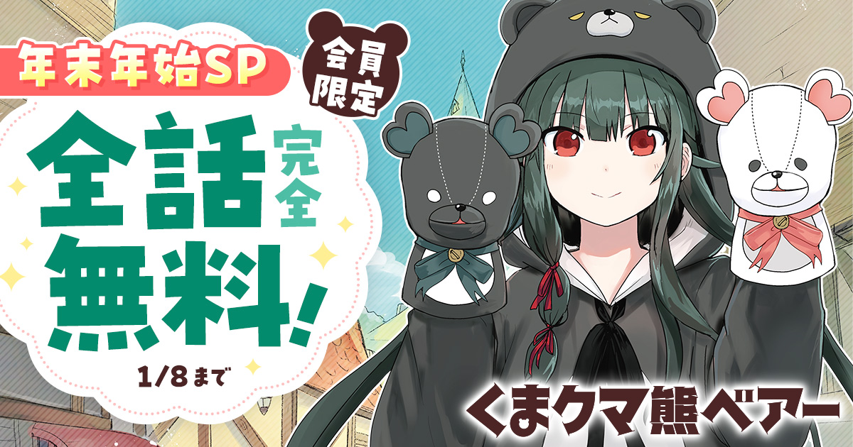 くまクマ熊ベアー・第1話くまクマ熊ベアー・第1話 【TVアニメ2期も大好評!】15歳の引きこもりゲーマー・ユナ。ある日、いつものようにファンタジーRPGにログインしたら、どうやら異世界に入り込んじゃったみたい!? そして、与えられた装備は「クマセット」…って、なんじゃこりゃーー!? 魔物退治に人助け、美味の探求etc…チートなクマさん装備に身を包んだ最恐クマっ娘(脱げばただの運動不足な少女)の、自由気ままな異世界(?)生活! PASH!ブックスの大人気小説、痛快異世界冒険譚が満を持してコミカライズ!!